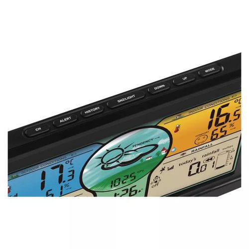 - Možnosť nastavenia alarmu zrážok a vonkajšej teploty, zobrazenia animovaného grafu histórie merania tlaku, teploty a vlhkosti.