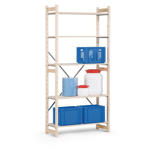 Drevené regály, základné, 209 x 97 x 30 – 50 cm, 5 políc, smrek