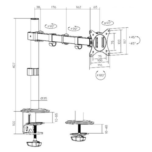 | Názov produktu | Držiak monitora Brateck LDT66-C012, jedno kĺbové rameno, na tyčovom držiaku |
