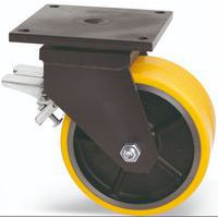Dvojité polyuretánové transportné kolesá s prírubou, otočné s brzdou, guľkové ložiská