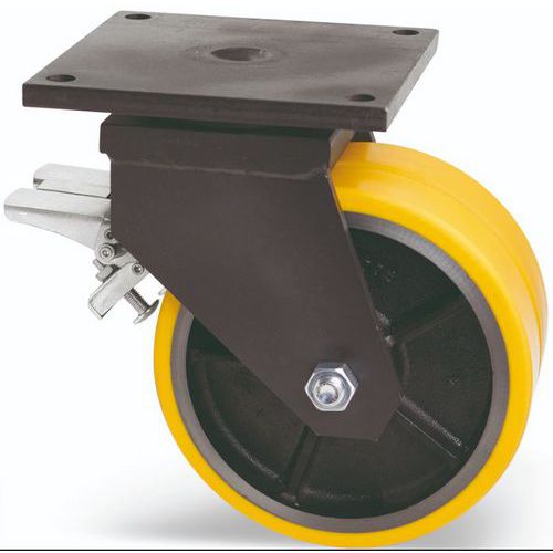 Dvojité polyuretánové transportné koleso s prírubou, priemer 150 mm, otočné s brzdou, guľkové ložisko