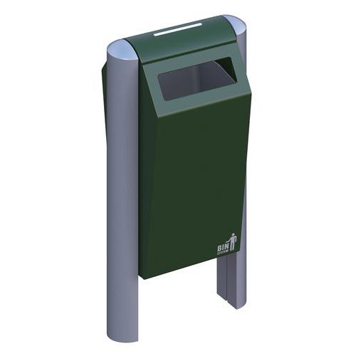 Krásne navrhnutý vonkajší odpadkový kôš z vysokokvalitnej pozinkovanej ocele s práškovou povrchovou úpravou, s otvorom na odkladanie na oboch stranách.