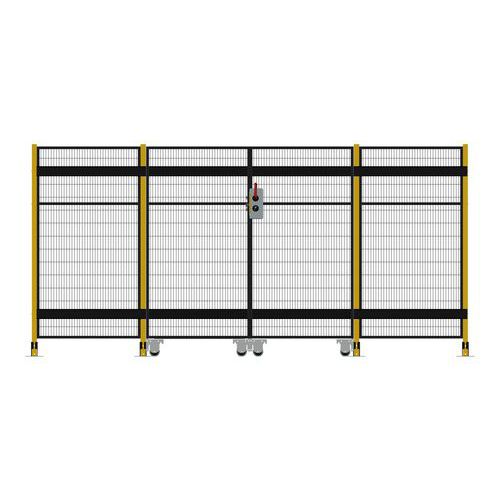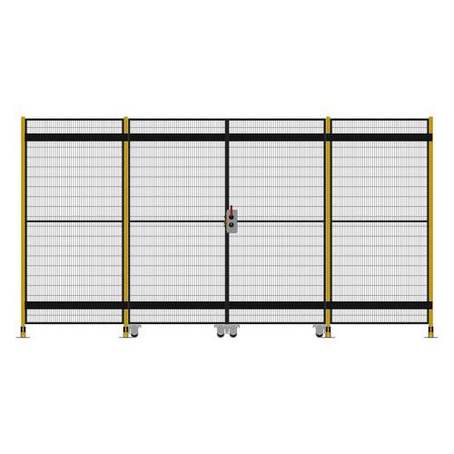 Kompletné dvojkrídlové posuvné dvere s cylindrickým zámkom pre systém ochranného oplotenia.