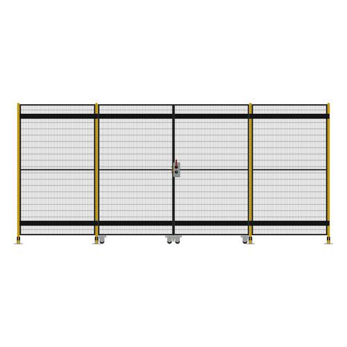 Kompletné dvojkrídlové posuvné dvere s cylindrickým zámkom pre systém ochranného oplotenia.