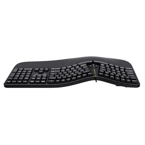 - Unikátny ergonomický tvar klávesnice podporuje správnu polohu rúk a zápästí, čo znižuje únavu pri dlhšom písaní.