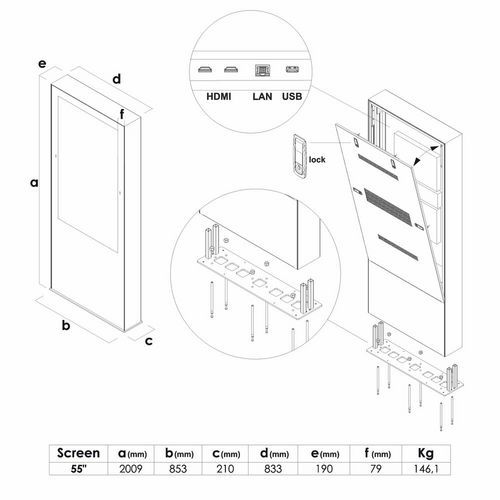 - Digitálny Outdoor Totem 55 ESF poskytne odolnú prezentáciu pre vonkajšie prostredie.