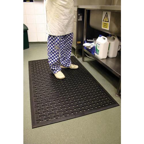 - Priemyselná protiúnavová rohož vhodná do prevádzok, kde sa spracováva a podáva jedlo. Rohož má výborné protišmykové vlastnosti v olejovom prostredí, antimikrobiálne vlastnosti rohože zamedzujú množeniu mikróbov. Štruktúra rohože umožňuje, aby tekutiny mohli stekať a povrch tak zostal stále suchý. Rohož možno prať v priemyselných práčkach.