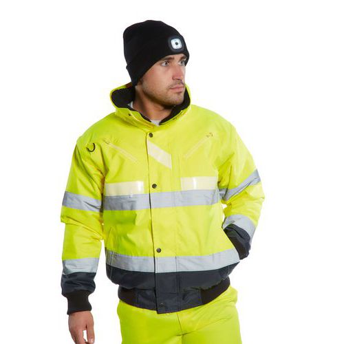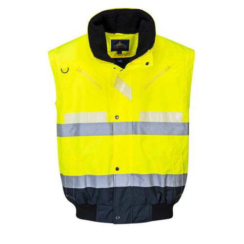 Bomber bunda 3 v 1 využíva našu vysoko inovatívnu trojitú technológiu Glowtex. Ponúka pokročilú viditeľnosť kombináciou fluorescenčnej tkaniny HiVisTex reflexnej pásky a Glowtex fosforescencie ktoré svietia v tme. Odnímateľná kožušinová podšívka a golier v kombinácii s odzipsovateľnými rukávmi skvele adaptabilný odev. CE certifikované Odnímateľná kapucňa Vrecko na telefón UPF 50+ 4XL Pletený lem Predný D-krúžok 8 vreciek Nepremokavé s lepenými švami Odopínacie rukávy kožušina lemovaný a kožušinový golier Superior trojitá technológia Glowtex 3 v 1 bunda Drážkované manžety Ezee Zips Texpel Splash Zapísaný dizajn Spoločenstva