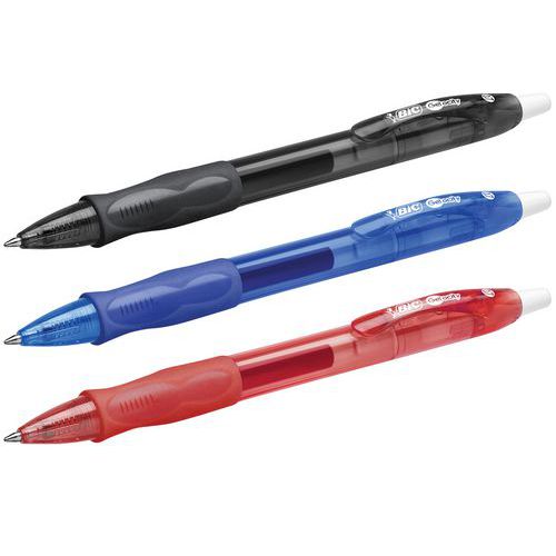 Gélové perá s gumovým úchopom pre lepšie ovládanie a pohodlie. Gélový atrament sa pri pohybe guľôčkového pera po papieri mení na tekutý atrament. Výrobok neobsahuje PVC a je šetrný k životnému prostrediu. Priehľadné telo z ABS umožňuje sledovať hladinu atramentu. Polypropylénový adaptér určený na reguláciu prietoku atramentu.