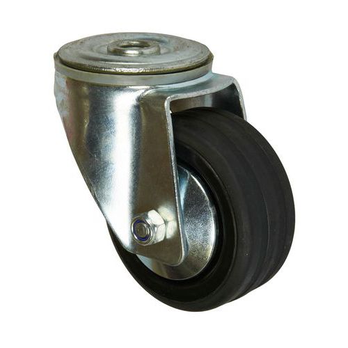 Gumové transportné koleso so stredovým otvorom, priemer 100 mm, otočné, klzné ložisko
