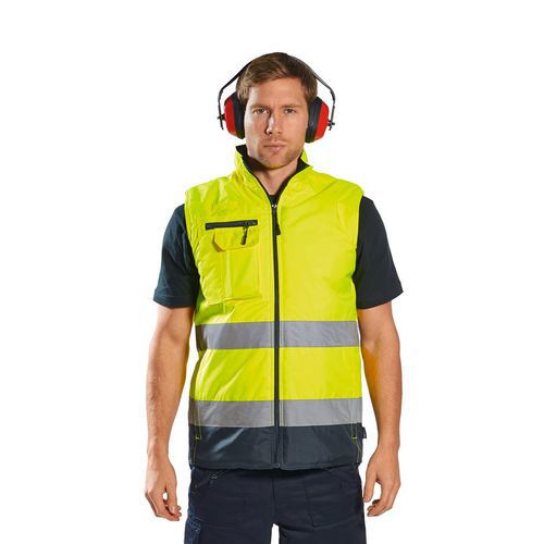 Klasická vesta v modernom dvojfarebnom prevedení. Multifunkčné vrecká vrátane vrecka na telefón zateplenie udržuje nositeľa v teple. CE certifikované Vnútorné náprsné vrecko Vrecko na telefón Duálny držiak na preukazy Pútko na vysielačku Reflexná páska UPF 50+ Vrecká so zipsom 6 vreciek Podšité Texpel Splash Certifikované po 50 pracích cykloch