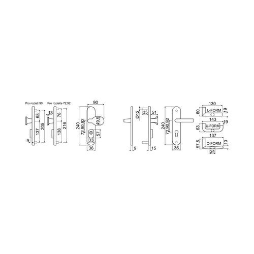 | Názov produktu | Hliníkové bezpečnostné kovanie R801, madlo/kľučka s prekrytím vložky, ZB.72, TB3, nerez |
