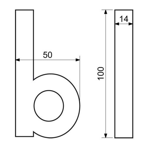 Hliníkové číslo v 3D vyhotovení s brúseným povrchom, znak „B“, strieborné Hliníkové číslo v 3D vyhotovení s brúseným povrchom, znak „B“, strieborné