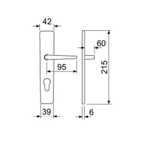 Hliníkové kovanie ERIKAC, BB, kľučka/kľučka, strieborný elox