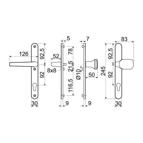 Hliníkové kovanie pre vstupné dvere, imitácia nerezu fluorcarbon