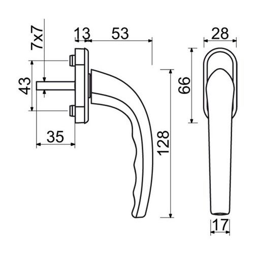 Hliníková okenná kľučka so zinkovým jadrom, imitácia nerezu fluorcarbon