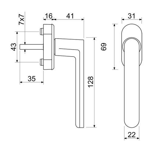 Hliníková okenná kľučka so zinkovým jadrom, práškovaná biela