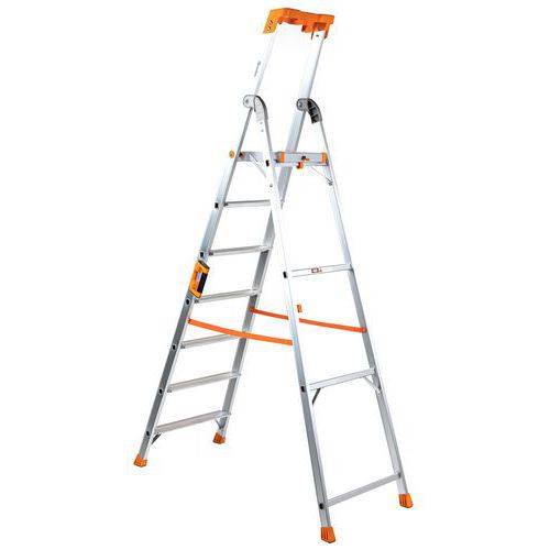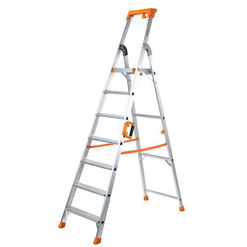 - Skladacie hliníkové schodíky s jednostranným vstupom, vhodné na stavebné práce alebo do skladu.