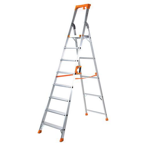 - Skladacie hliníkové schodíky s jednostranným vstupom, vhodné na stavebné práce alebo do skladu.