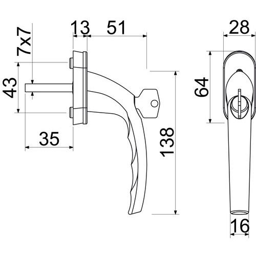 Hliníková uzamykateľná okenná kľučka so zinkovým jadrom, strieborný fluorcarbon