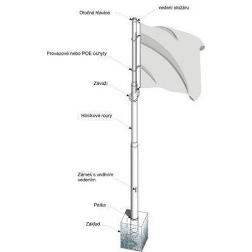 Hliníkové stožiare na vlajky s vonkajším vedením lanka. Dostupné v niekoľkých výškových variantoch. Stožiare sa skladajú z dvoch (5 – 6 m) alebo troch (7 – 10 m) dielov. Vyťahovanie a skladanie vlajky pomocou lanka. Eloxovaný povrch zaisťuje vyššiu odolnosť proti poveternostným vplyvom.