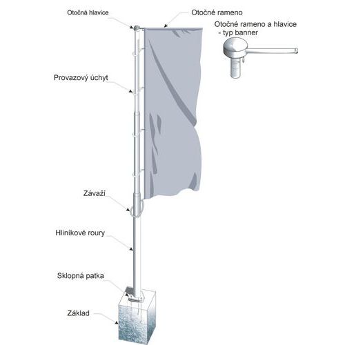 Hliníkové vlajkové stožiare s otočným ramenom a sklopnou pätkou, 5 – 10 m Hliníkové vlajkové stožiare s otočným ramenom a sklopnou pätkou, 5 – 10 m