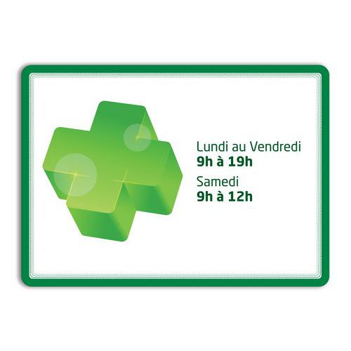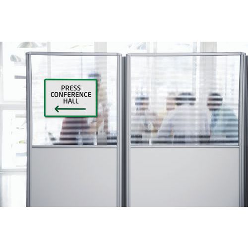 - Priehľadné informačné tabuľky A4 v rôznych farbách slúžia na zviditeľnenie dôležitých informácií.
