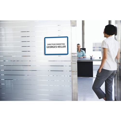 - Priehľadné informačné tabuľky A4 v rôznych farbách slúžia na zviditeľnenie dôležitých informácií.