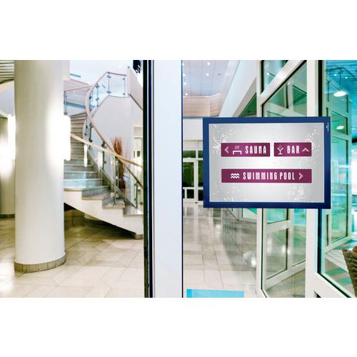 - Obojstranná čitateľnosť na sklenených plochách vďaka možnosti vložiť 2 dokumenty.
