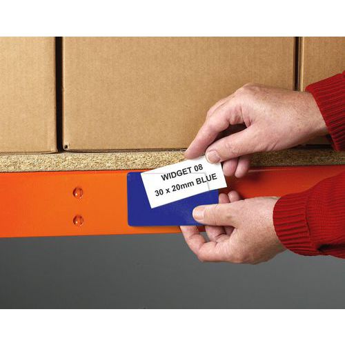 - Lepiace štítky na popis a označenie regálov vo viacerých farebných variantoch.