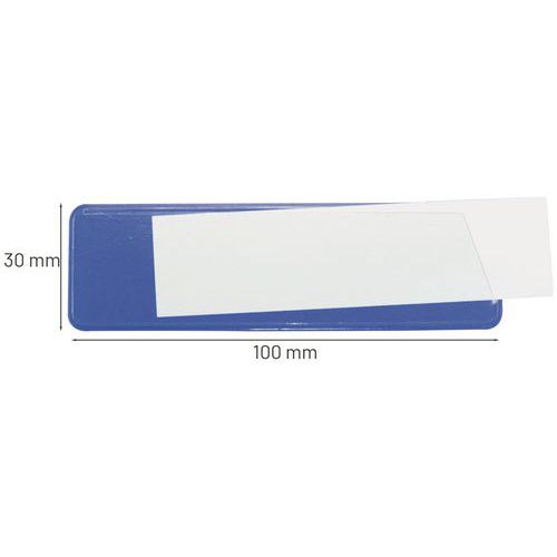 Informačné štítky na regály Manutan Expert, lepiace, 100 x 30 mm, 100 ks, modré