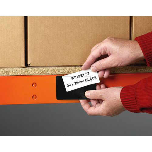 - Lepiace štítky na popis a označenie regálov vo viacerých farebných variantoch.