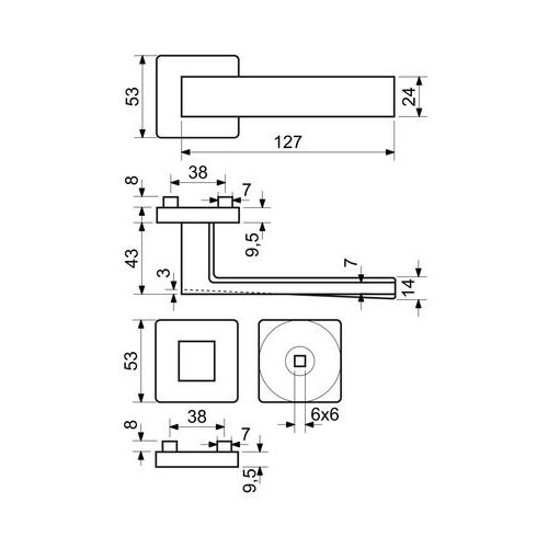 - Oceľová konštrukcia rozety v systéme FIX IN – pevné zoskrutkovanie kľučiek a roziet cez dvere.