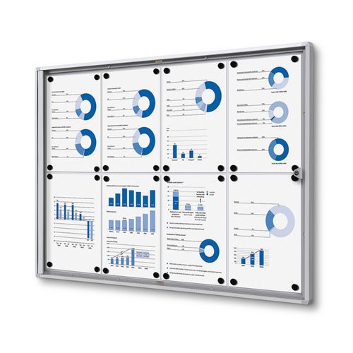 Interiérová vitrína Economy, plechový chrbát, 8xA4