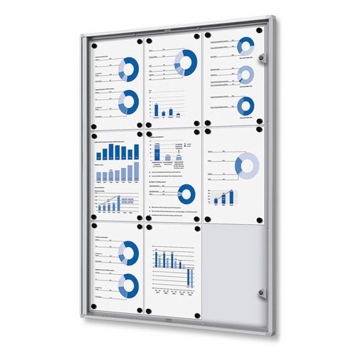 Interiérová vitrína Economy, plechový chrbát, 9xA4