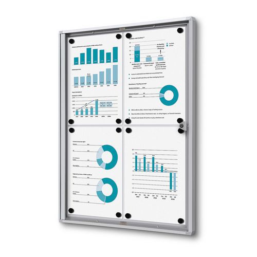 Interiérová vitrína Economy, plechový chrbát, protipožiarny atest B1, 4xA4