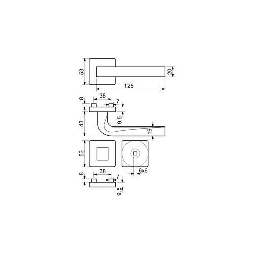 - Zamakové kovanie na štvorcových rozetách s vratnou pružinou kľučiek.