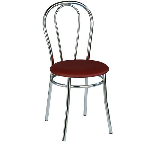 Čalúnená jedálenská stolička zložená zo spevnenej oceľovej konštrukcie a pohodlného sedadla z kvalitnej syntetickej kože v rôznych farebných vyhotoveniach. Dlhodobý estetický vzhľad kovových častí je zaručený povrchovou úpravou chrómom. Ďalšou výhodou je ľahké uskladnenie vďaka stohovateľnosti stoličiek. Vhodná stolička do jedální, kaviarní či domácich priestorov. Predaj po baleniach. Nosnosť tejto modernej stoličky do 110 kg.