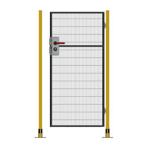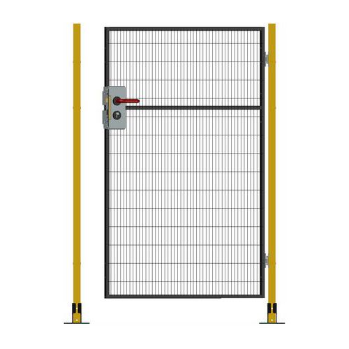 Kompletné jednokrídlové závesné dvere s cylindrickým zámkom pre systém ochranného oplotenia.