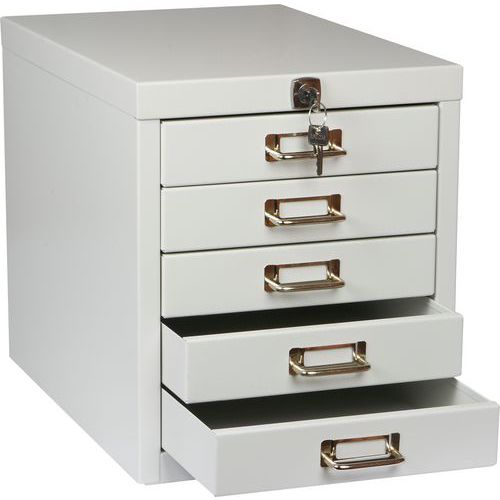 - Kovové kartotéky s piatimi zásuvkami a centrálnym zámkom na ukladanie rôznych typov dokumentov.