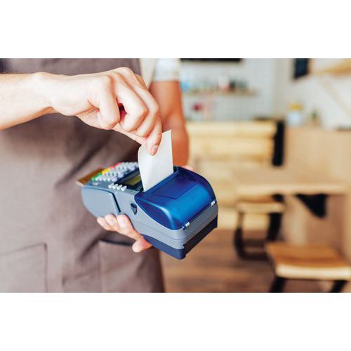 - Papierové kotúčiky vhodné pre účtenky z bankových terminálov.