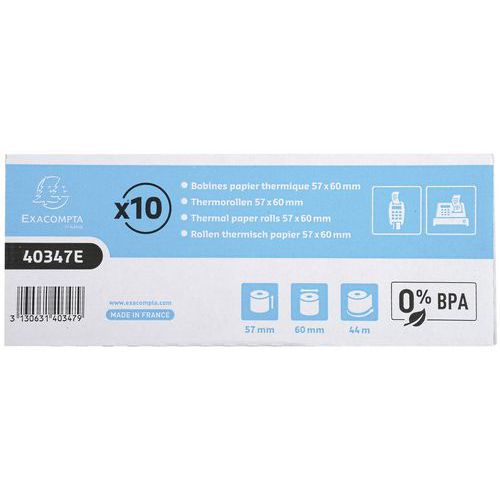 Jednovrstvové papierové termokotúčiky Exacompta, 55 g/m², 44 x 57 mm