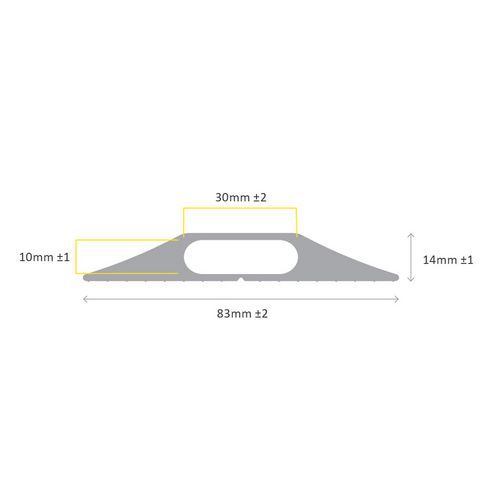 Univerzálne káblové chrániče na vnútorné aj vonkajšie použitie. Variant so žltými bezpečnostnými pásmi zvyšuje viditeľnosť prejazdu. Znižujú riziko zakopnutia spôsobené voľne položenými káblami. Zabraňujú nežiaducemu vyťahovaniu či poškodzovaniu káblov. Na uloženie káblov slúži vnútorný otvor 10 x 30 mm. Vyrobené vo UK