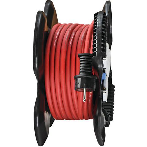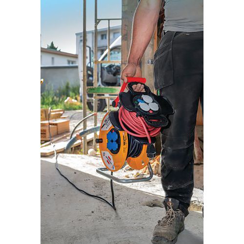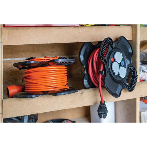 Káblový navijak X-GUM s 3 zásuvkami a samouzatváracími chlopňami. Plastová/gumová základňa, LED indikátor prítomnosti napätia, 2 USB zásuvky s krytkou a tepelnou poistkou. Kábel H07RN-F odolný voči uhľovodíkom na profesionálne použitie. Trvalý prívod pre vaše zariadenie vďaka 2 nabíjacím konektorom USB 5V/2,1A. Ľahký, praktický a kompaktný, s 2 integrovanými držadlami.