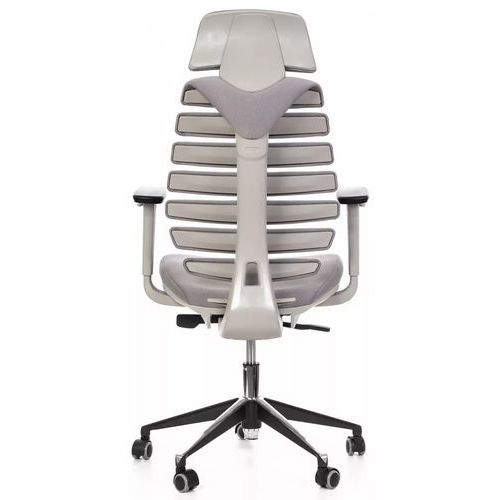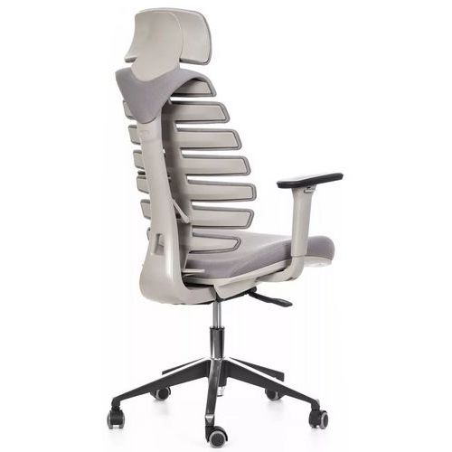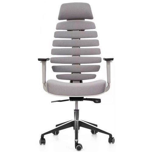 Kancelárska stolička Fish Bones s podhlavníkom a sivou konštrukciou.