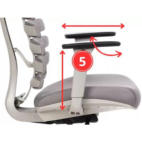 Súčasťou je výškovo nastaviteľná hlavová opierka a 3D nastaviteľné podrúčky s mäkkou dotykovou plochou.
