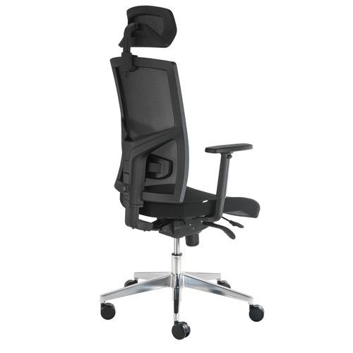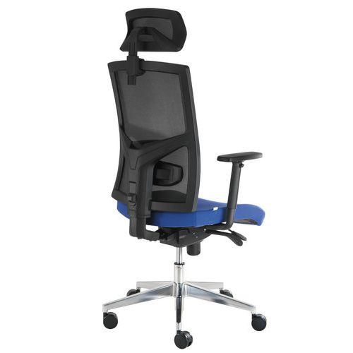 - Kancelárska stolička Manager VIP Nature s textilným sedadlom a operadlom z priedušnej sieťoviny s nastaviteľnou bedrovou a hlavovou opierkou.