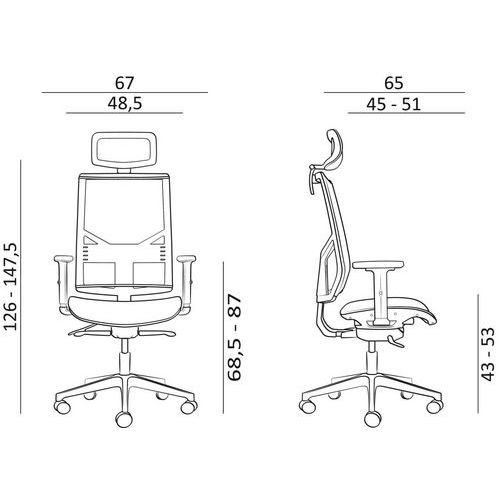- Súčasťou je sieťovaná opierka hlavy, ktorú je možné výškovo aj uhlovo nastaviť podľa požiadaviek používateľa.