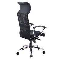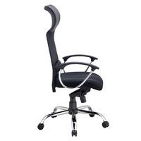 Multifunkčná kancelárska stolička s hojdacím mechanizmom, pevnými plastovými opierkami rúk a látkovým sedákom.