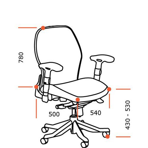 Ergonomicky tvarované kancelárske kreslo s výraznou bedrovou opierkou a bakteriostatickým poťahom je vybavené hojdacím mechanizmom, ktorý je možné aretovať v základnej polohe alebo blokovať vo zvolenej pozícii s nastavením sily protiváhy podľa hmotnosti používateľa. Súčasťou kresla sú pevné podrúčky, plynový piest a kvalitný nylonový kríž s kolieskami na mäkké povrchy. Celočalúnené kreslo ponúkame v štyroch farebných variantoch. Nosnosť kresla je 130 kg.